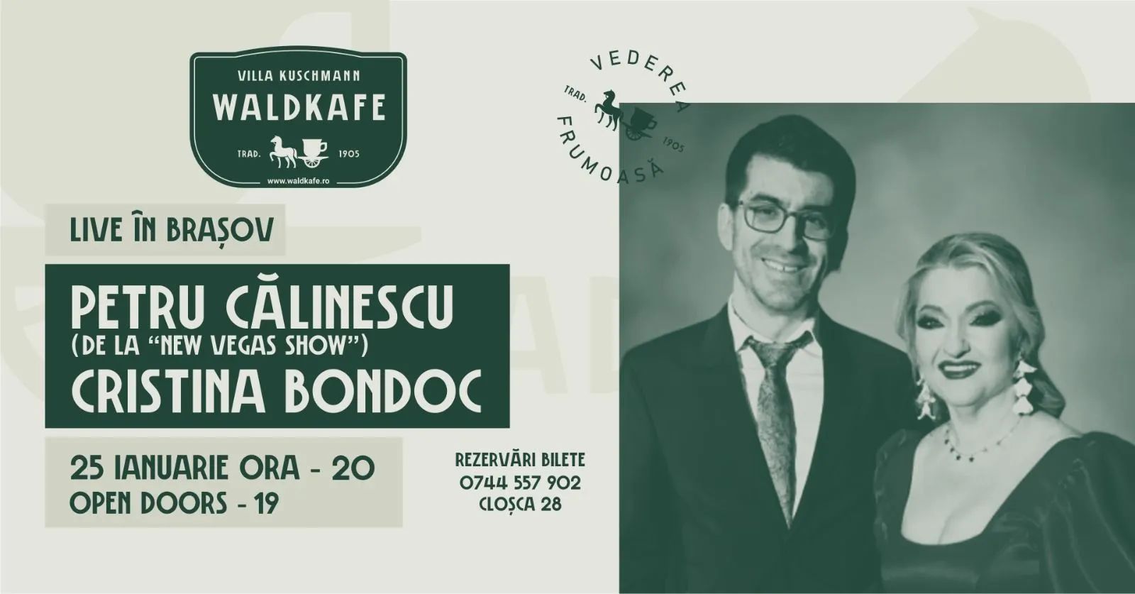 🎷 Petru Călinescu & Cristina Bondoc: duminică, 25 ianuarie, ora 20:00, la Waldkafe. O seară de jazz cu Petru Călinescu și Cristina Bondoc, doi artiști de excepție care îmbină muzica și teatrul. Rezervă-ți locul din timp!