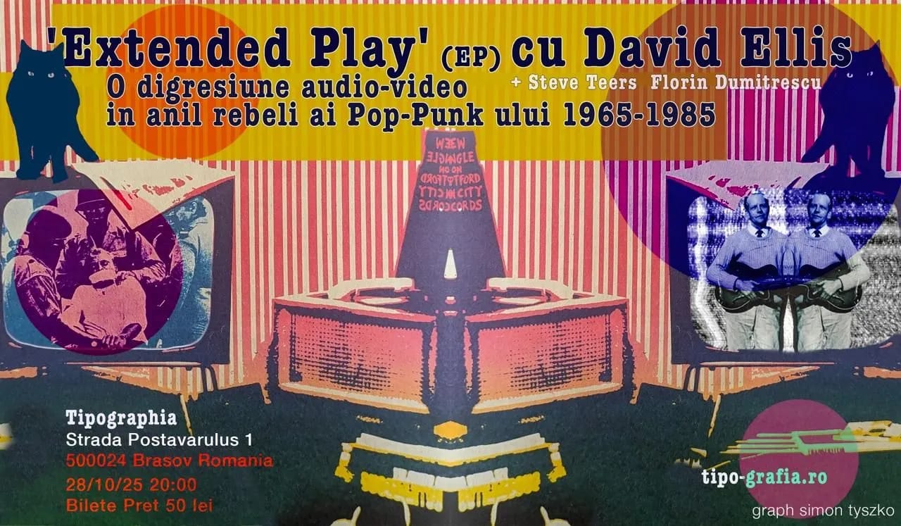 🎧 Extended Play – David Ellis & Friends: marți, 28 octombrie, ora 20:00 la Tipografia. O călătorie muzicală prin memoria pop-ului britanic.