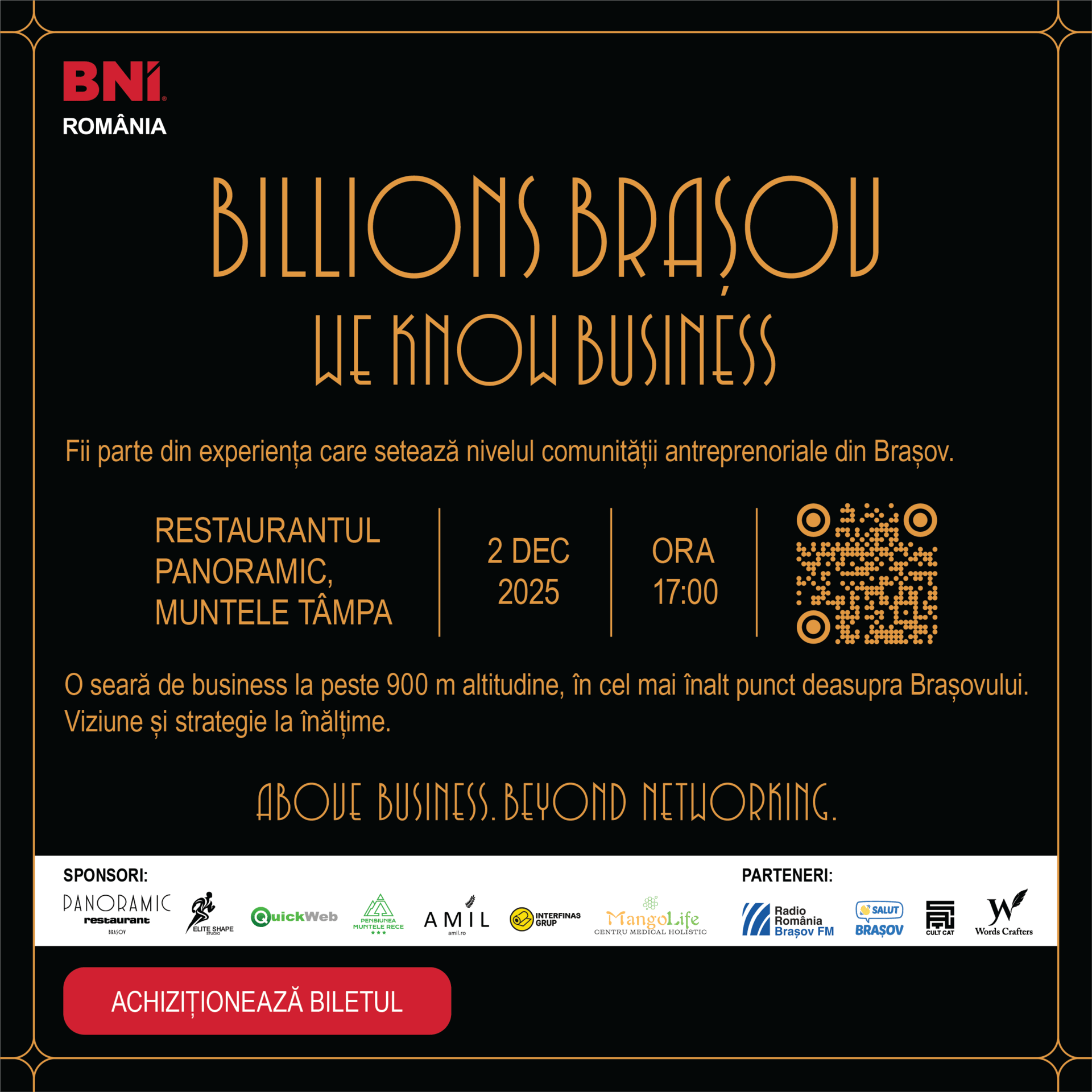 Pe 2 decembrie 2025, Brașovul găzduiește una dintre cele mai relevante întâlniri de business ale anului: lansarea oficială a grupului BNI Billions Brașov, parte din cea mai puternică rețea de business networking din lume.