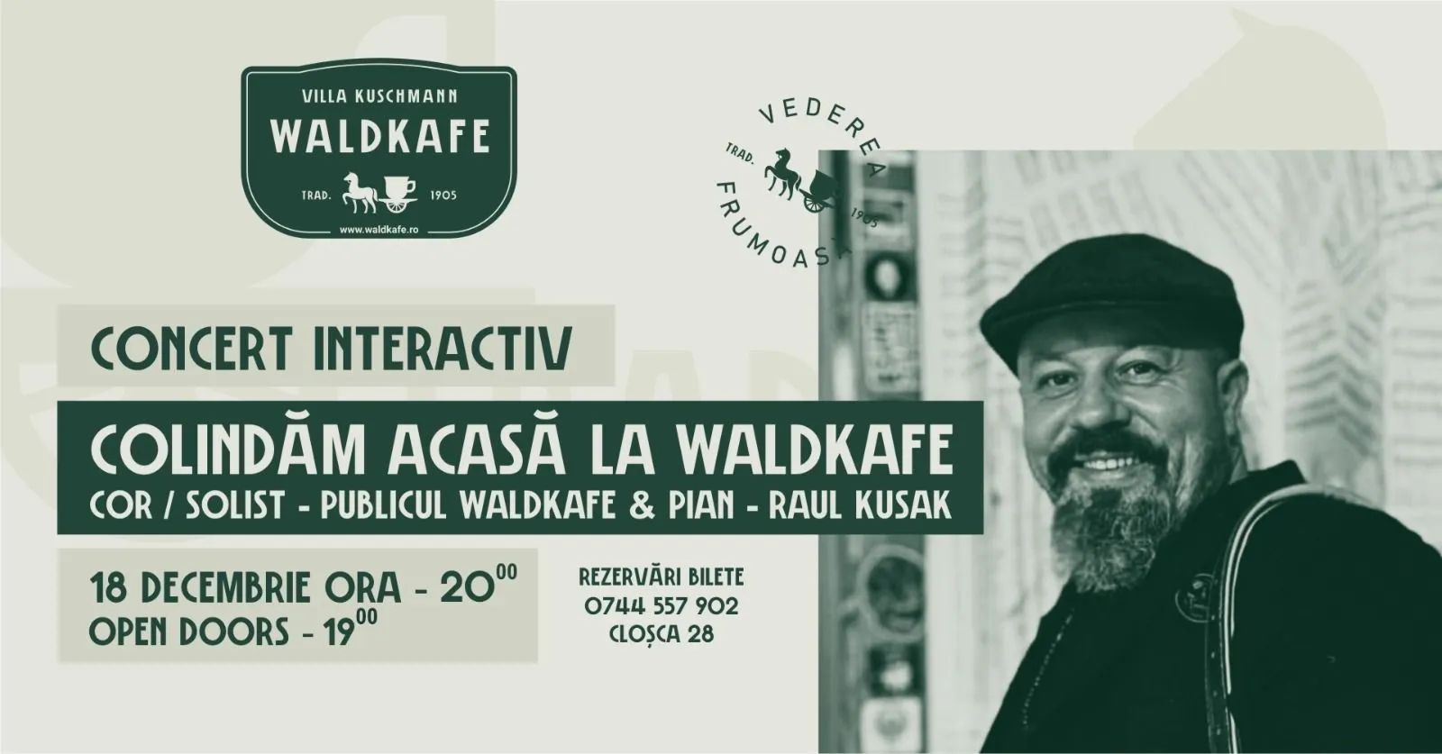 🎄 Interactiv • Publicul Waldkafe & Raul Kusak (pian): joi, 18 decembrie, ora 20:00, la Waldkafe. Cele mai frumoase cântece de Crăciun, cu versurile la îndemână pentru toți participanții.
